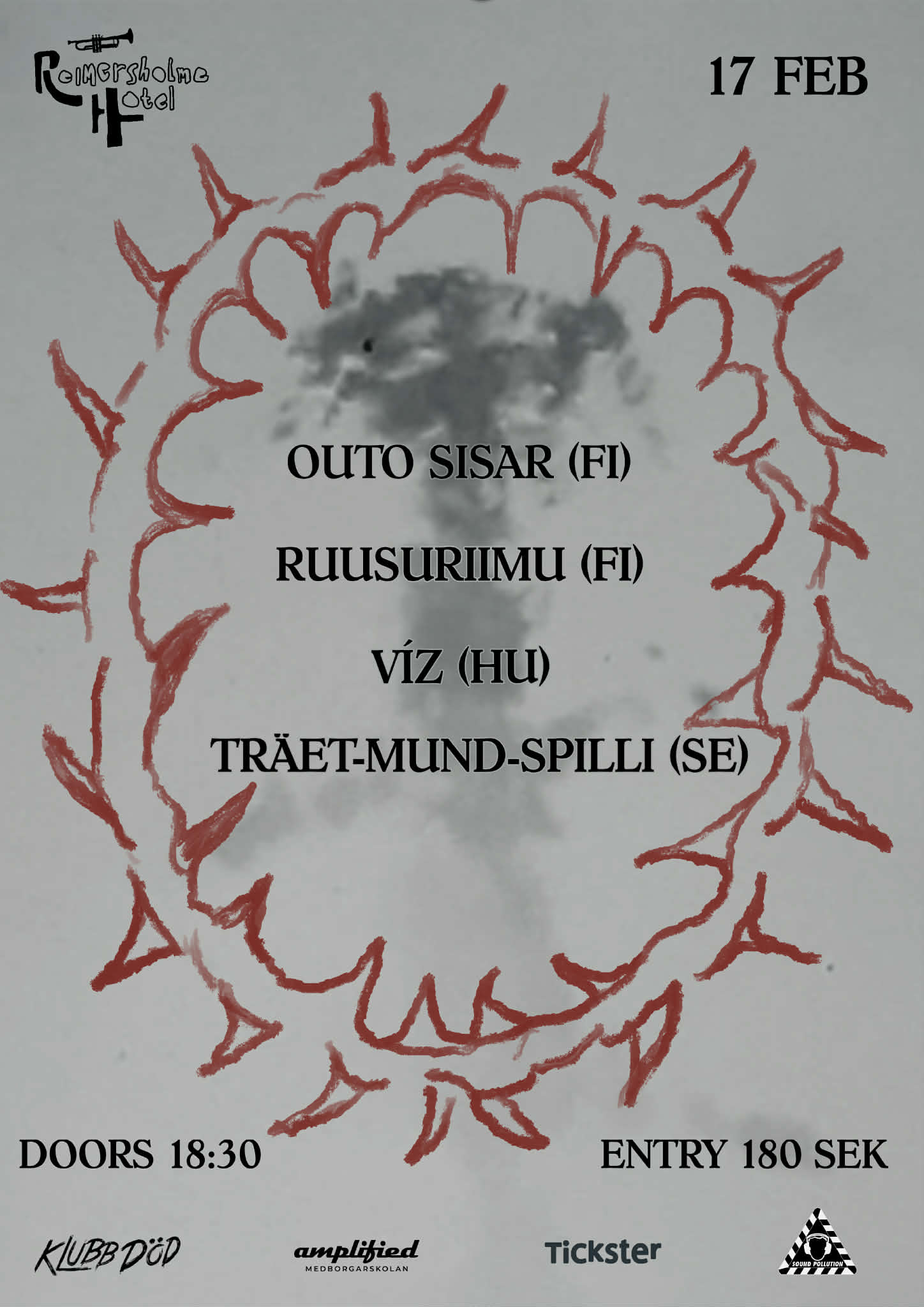 ▲ RUUSURIIMU (FI) – Ruusuriimu är en Helsingforsbaserad experimentell folkmusikgrupp vars musik kombinerar apokalyptiska folkinfluenser med industriell elektronika, spoken word samt ritualistiska sånger och percussion. Kärnan i Ruusuriimus väsen ligger i introspektion och utforskandet av mentala och spirituella landskap, och bandets musik är en manifestation av just detta.